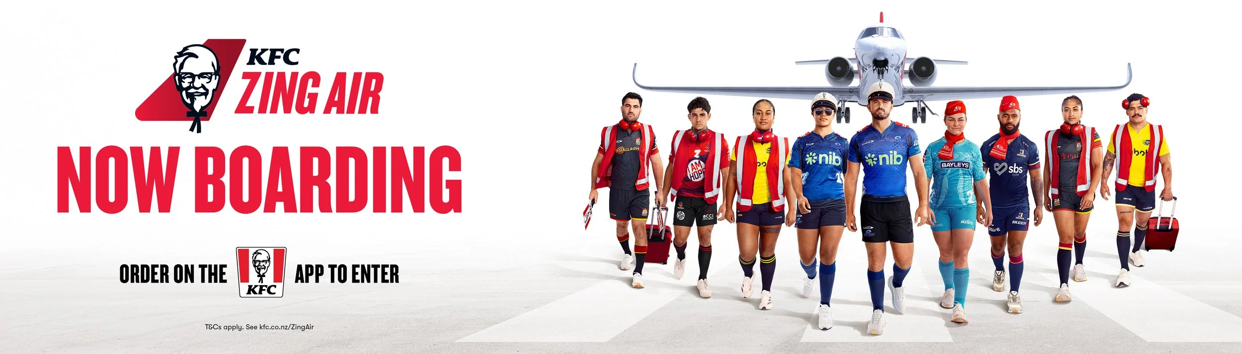 Introducing Zing Air: KFC’s first ever airline, delivering fans across the country to support their Super Rugby team.